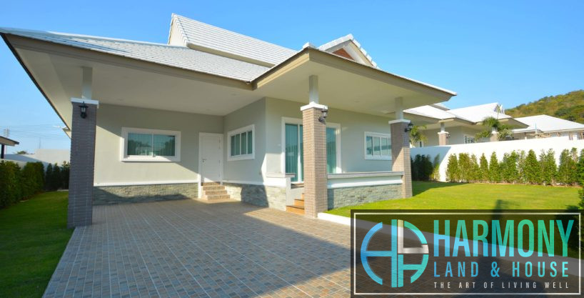 EMERALD VALLEY presents their beautiful custom built homes for you. This house style offers a large living area with 170+ squarer meters. The European style kitchen & dining room are semi-detached from the living room and provide ample dining and living space together with 3 bedrooms and 2 bathrooms. Both the master bedroom & the 2nd bedroom feature en-suite bathrooms. A spacious land plot consisting of 400 square meters allows you to have a tropical garden with either a small swimming pool or a koi fish pond. The house features a double wide carport able to park to cars and a nice storage/laundry room. This estate provides 24 hour security with CCTV surveillance, lush tropical landscaped gardens, waste management service a beautiful clubhouse with a large fitness room and an enormous swimming pool for the residents. Ideally located next to the Banyan golf course and within 5 minutes to literally everything Hua Hin has to offer, plus surround by beautiful mountain views and fresh sea breezes. Viewing by appointment only. For additional information or to schedule a viewing for this property, please contact the listing brokerage- Harmony Land & House Hua Hin. Email; info@harmony-realestate.com or call us – 081-989-8769 or 081-919-7769
